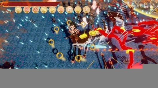 哪吒抛出发光的金砖,金砖落地后立刻朝着敌人猛砸过去,只要被砸中的小怪物,就一定会掉落经验值。