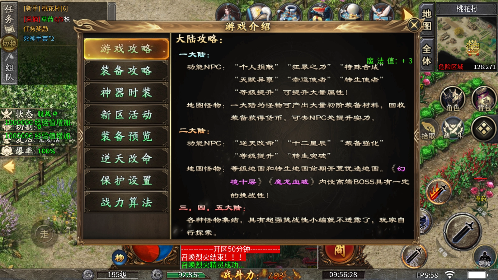 2、地图怪物:等级地图与转生地国是前期开荒的优选地图,而幻境十层、魔龙血域内设有高端BOSS,具备一定的挑战性!
