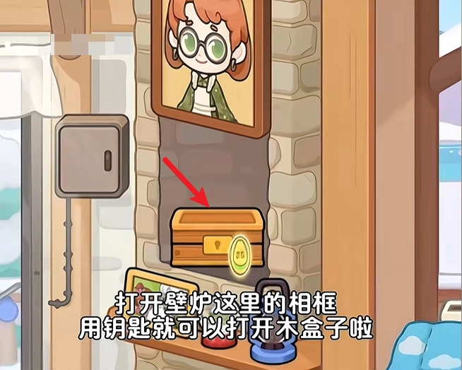 6、打开壁炉这里的相框用钥匙就可以打开木盒子啦。