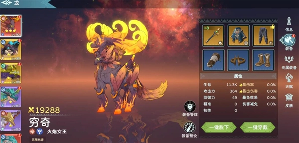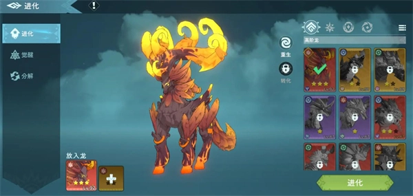 游戏里每条龙都存在潜能上限,一旦当前能力触及上限,就得借助进化来提升它们的品质,这样才能继续升级。具体操作是吞噬狗粮:低星阶段,狗粮必须使用与待升级龙相同的素材;高星之后,则可以用同属性同星级的任意狗粮。