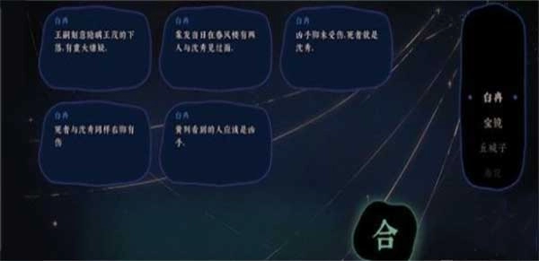 人物笔录:和NPC交流时,要主动去收集他们的证言。需要留意的是,有些证言或许带有误导性。