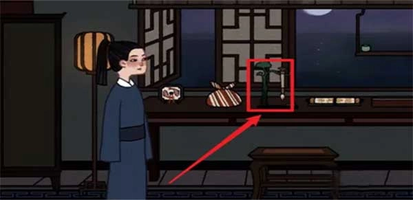 2、收集完成后回到客栈,在客房里的笔架位置进行互动操作。