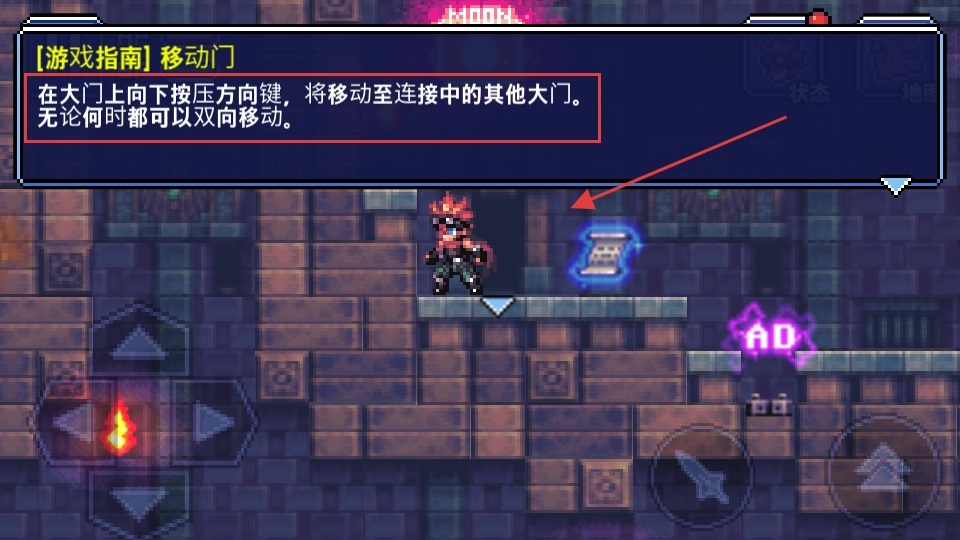 2、在大门处向下按压方向键,能够移动到与之相连的其他大门,并且这种移动是双向支持的。