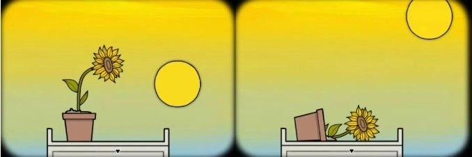 10、向右转,把沙子倒入花盆,接着放入向日葵。向日葵具有向阳性,会随着太阳的移动而转动。移动太阳的位置,让花盆倾倒,就能获取葵花籽。