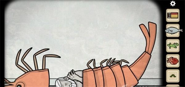 10、进入大虾所在的房间,从左右两侧剥开虾皮,露出william,接着用瓶子从他口中获取长生不老药。