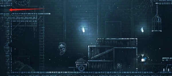 5、爬上吊灯右边的平台,柱子会断裂,把之前推断的柱子推过来修复平台,从平台往左跳过去,获得钥匙。