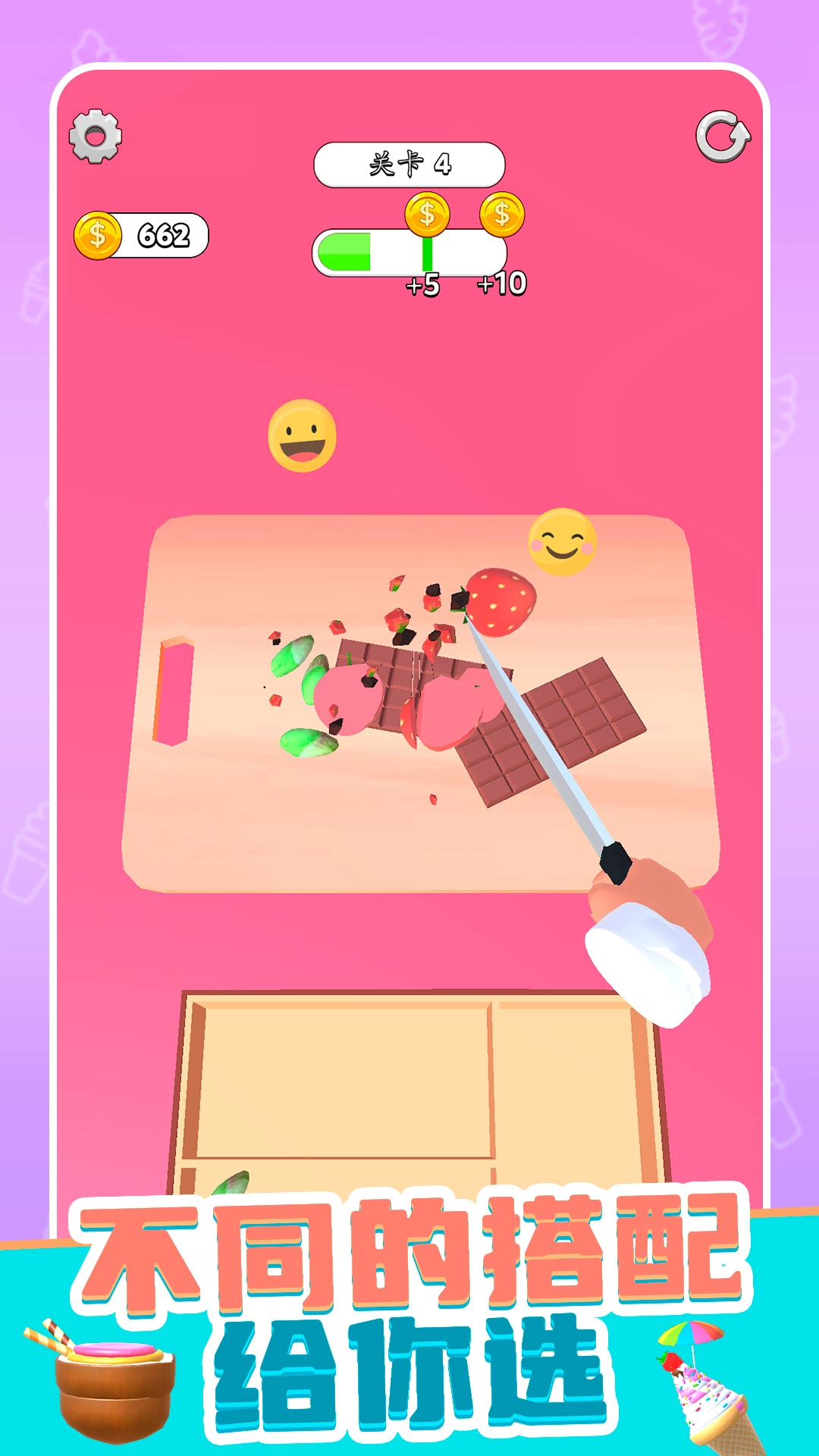 这款游戏运用贴近实际的色彩调配机制,玩家得借助组合各种占比的天然食材,来制作出符合顾客要求的冰淇淋色泽。