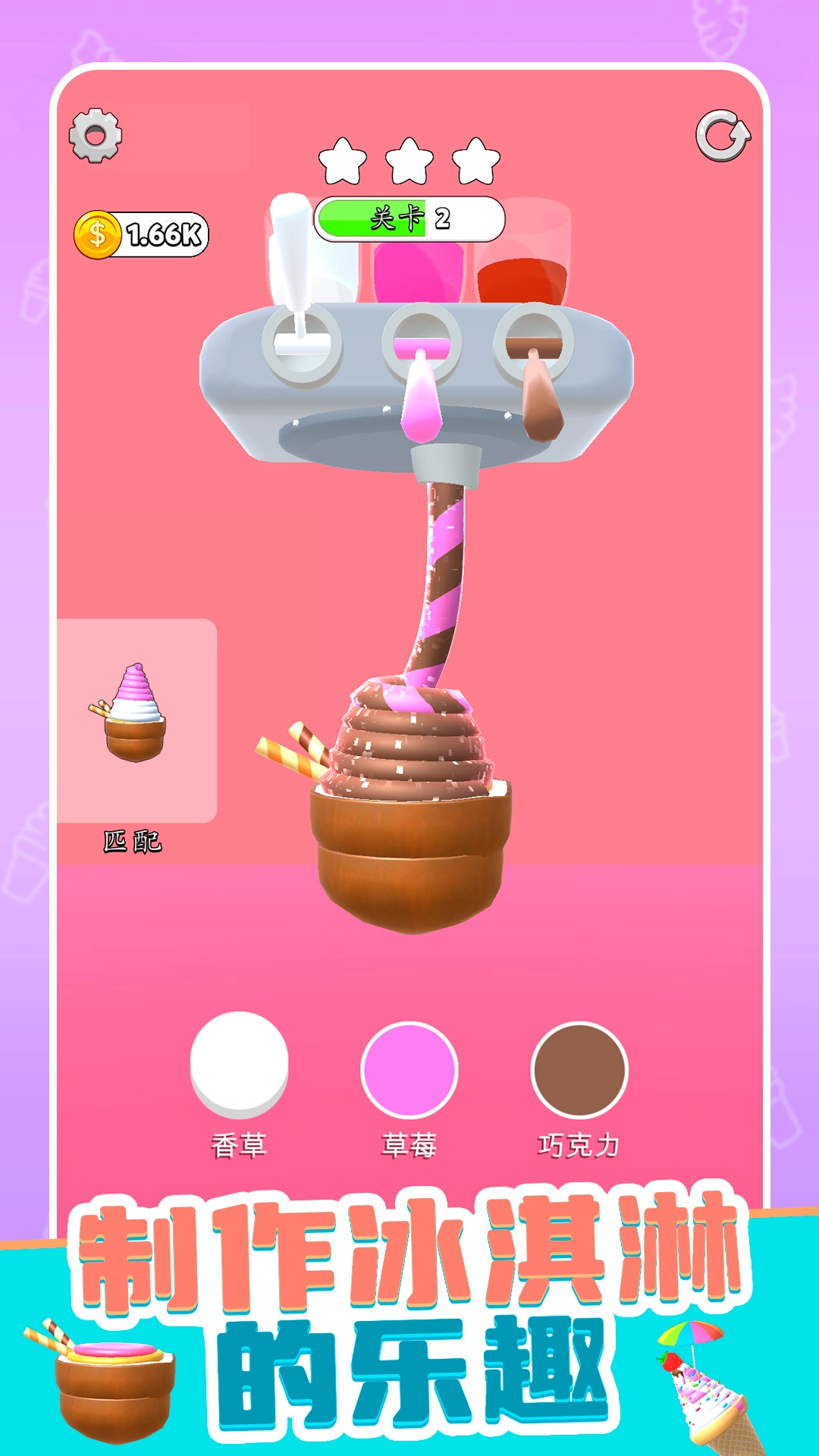 评分机制会依据冰淇淋的色彩还原度与制作效率来给出分数,进而左右最终获取的金币数额。