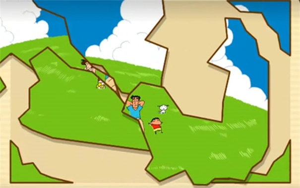 接下来蜡笔小新就能着手拼图啦,点击拼图碎片并把它移动到恰当的位置就可以了。