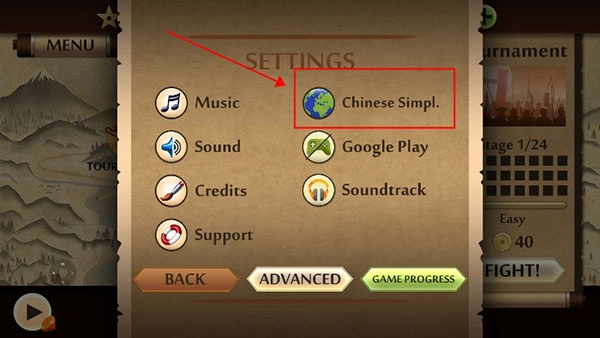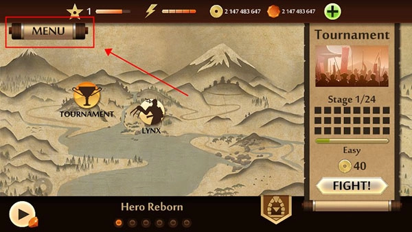 打开暗影格斗2正版,点击左上角的MENU菜单键;