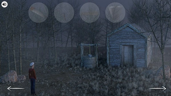 接着走到水井旁边,借助绳子与铁桶搭建起简易的升降装置,再次点击水井就能进入地下。