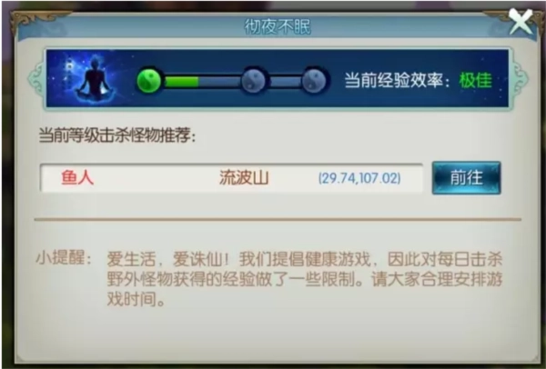 彻夜不眠是提升经验等级的重要方式。少侠可前往界面推荐的怪物所在地图及坐标处,通过挂机刷怪来提升自身等级。