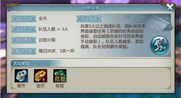 每日可完成20次的妖兽突袭任务,以5次为一个阶段循环,同一阶段内的任务奖励会随完成次数逐步提升。组队参与时,队伍成员数量越多,整体奖励越丰厚,同时担任队长还能额外获得更多奖励。