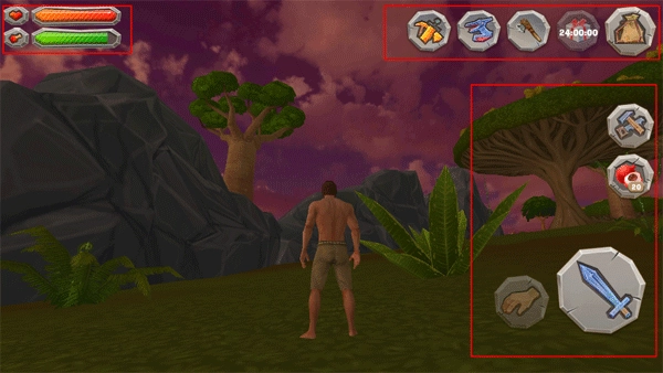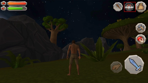 当画面背景透出几分血腥感,同时点缀着几滴透明的水滴状图案时,这意味着你的身体正发出极度缺水的信号——再不去补充水分,就真的要陷入脱水危机了!赶紧去喝些水吧;要是选择吃水果,虽然也能缓解,但补充的水量只够支撑你移动短短几步。而当血腥背景旁出现一个胃袋的图形时,则代表着饥饿感的来袭。不过其实不用太纠结这些提示,只要留意界面右下角分别代表水分和饱腹度的水滴与肉块图标,就能清楚掌握身体的状态啦!