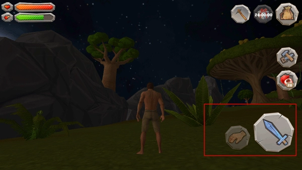 拾取功能需要人物靠近可拾取物品后,长按拾取键才能获取物品;剑图标则是用于防御或攻击的按钮。