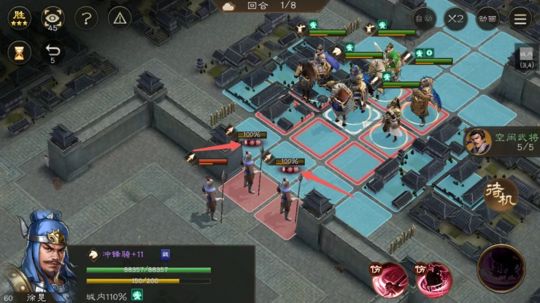 当兵种之间存在克制关系时,若我方兵种克制对手,则我方造成的伤害提升30%;若我方兵种被对手克制,则我方造成的伤害减少25%。举例来说:关羽的兵种是重骑兵,吕布是山地骑兵,孙策是轻骑兵——这三者都归属于骑兵类别,骑兵克制刀步兵,却被枪兵克制。所以当他们对阵刀步兵时,输出的伤害会增加30%;而当他们与枪兵交锋时,造成的伤害会降低25%。