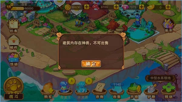 当领地上还有神兽时,领地不可出售;