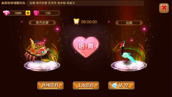 培育:若你玩过《全民精灵》这类养成游戏,推荐通过培育获取神兽。把两只不同元素的2阶神兽放进培育池两两交配,就有机会培育出新神兽。这里分享个小技巧:选好神兽后,点击“连续培育”就能查看培育结果,还能选其中一种作为培育目标。要是你对参与培育的神兽组合没信心,也别慌,打开图鉴找到对应神兽,就能看到相应的培育方法推荐。
