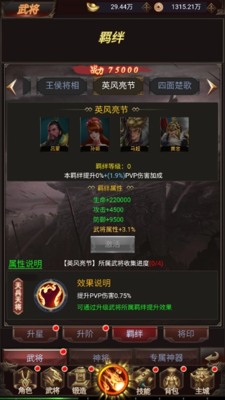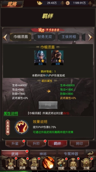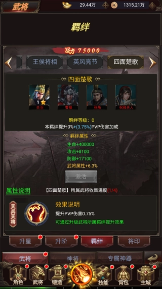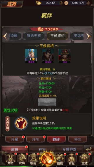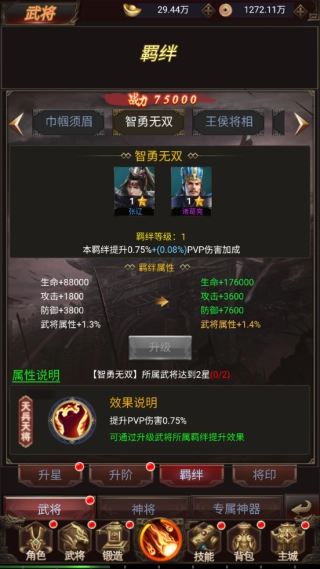 前往角色进行一键换装点击武将进行升级、升星