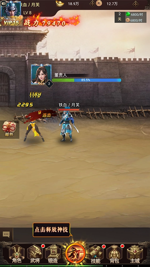 进入游戏挑战闯卡,战斗中可释放技能