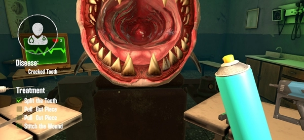 游戏里配备了各式各样的牙医工具让玩家选用,像牙钻、镊子、牙线之类的都有。