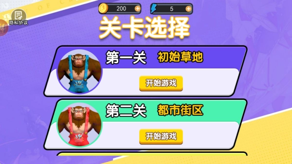 场景里有不同等级的其他猩猩,玩家控制的猩猩只能攻击等级比自己低的猩猩,长按屏幕就能蓄力放出特殊技能。