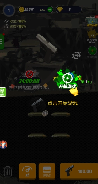 增益道具解锁机制,通过完成任务来获取诸如伤害加成、射速提升之类的强力道具,帮助玩家应对更猛烈的僵尸浪潮。