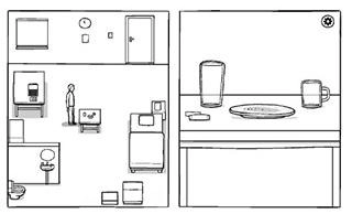 点击房间中央的2个位置,接着利用桌上的食物:把两样饮品拖动饮用完毕,点击中间的食物吃完,点击左侧包装将其放大后,快速拖动糖包能洒出大量碎屑,总共可达到30粒。待这些都完成后,时间就会变为中午11点。