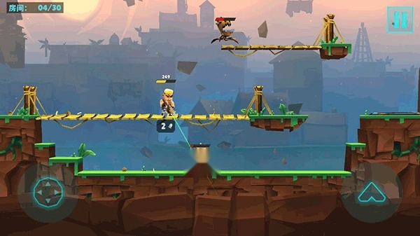 游戏左下角的方向键用于控制移动,右侧的按钮则分别负责跳跃和射击操作。