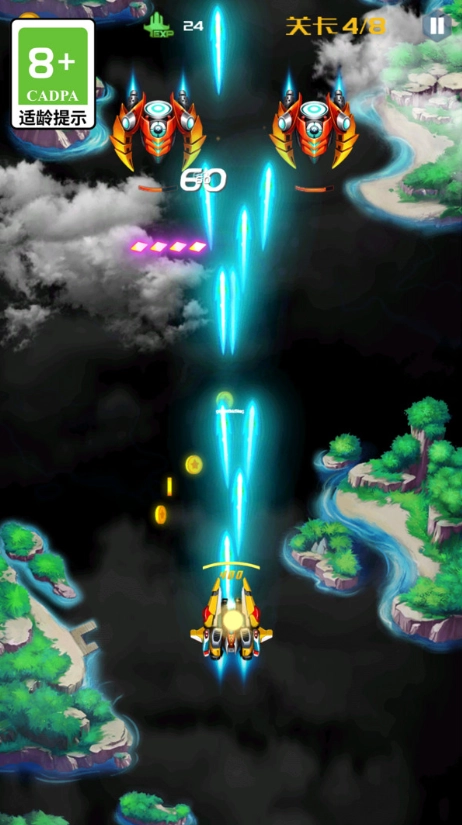 用虚拟摇杆操控战机移动,系统会自动射击,你还能手动释放强力大招来摧毁沿途遭遇的敌机。2、在关卡里要避开像雨点一样密集的敌方弹幕,只要击破指定目标或者坚持到倒计时归零就能顺利通关。