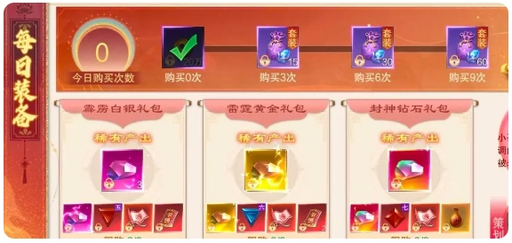 每日装备与限购商城:玩家每日登录游戏并完成日常任务后,就能在每日装备板块领取套装石碎片或完整的套装石。此外,限购商城会定时更新上架套装石,玩家可消耗仙玉进行购买。