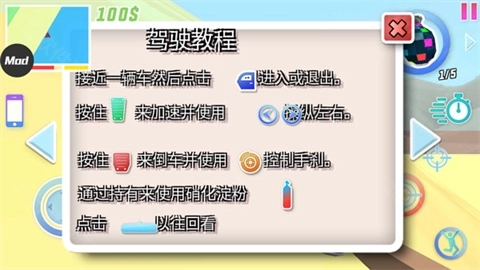点击“后视镜”按钮能够实现向后查看的功能,点击“氮气瓶”按钮则可启用氮气加速功能。
