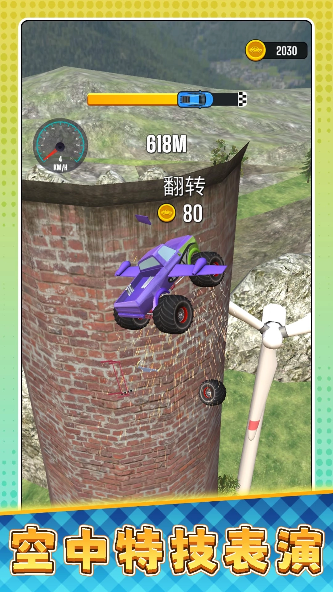 2、释放汽车前留意风速提示,逆风时可适当把蓄力力度提高20%,顺风时就将其降低10%,借助这样的调整来应对环境带来的影响,从而让飞行距离达到最大。