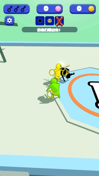 4、每局游戏都有着清晰的目标——让对手出局,玩家得时刻留意自身与对手的位置,思考是把对手逼到角落,还是借助场景里的陷阱来达成目的。