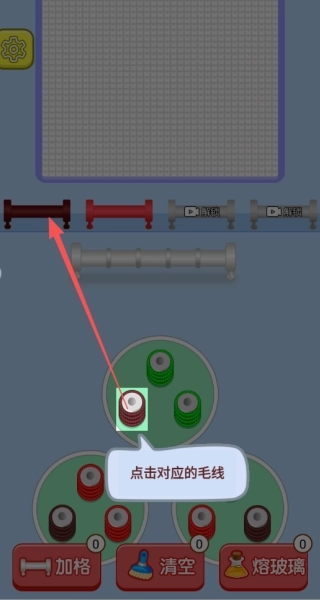 1、点击彩色毛线球,将其投入下方对应颜色的管道,就能完成基础消除操作。