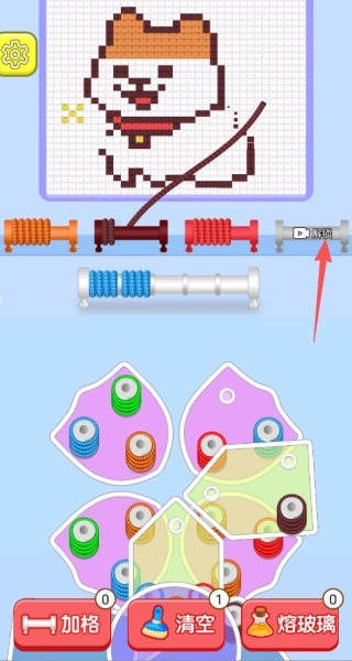 2、临时存放区里的异色毛线,能够依据三消规则,和相邻的同色毛线组合来完成消除。