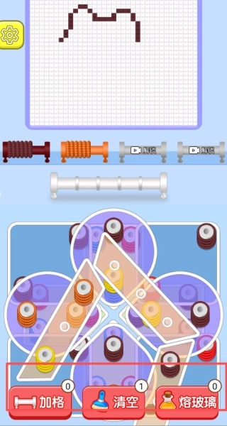 3、随着关卡的不断推进,会解锁额外的管道槽位,这些槽位可用来存放暂时无法匹配的特殊颜色毛线。