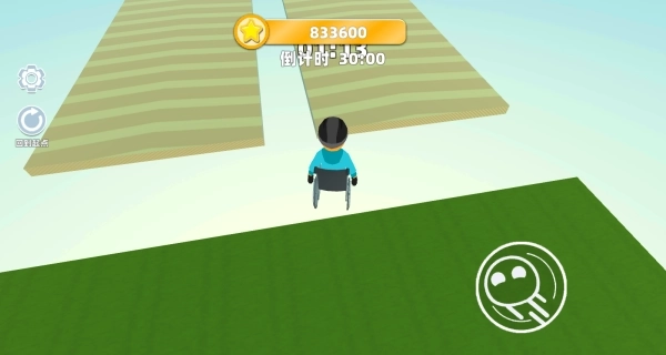 3、通过虚拟摇杆操控轮椅的移动方向,依据赛道的高低落差,及时点击跳跃键,防止轮椅掉落赛道从而造成游戏失败。