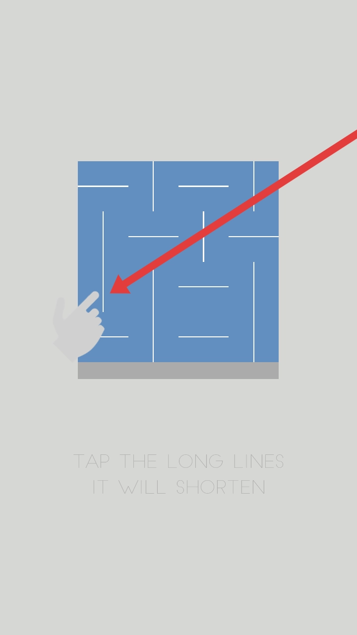 进入直线消除2的游戏,遵循系统新手教程的提示,点击蓝色区域内的白色长线,使其缩短,开启玩法体验。