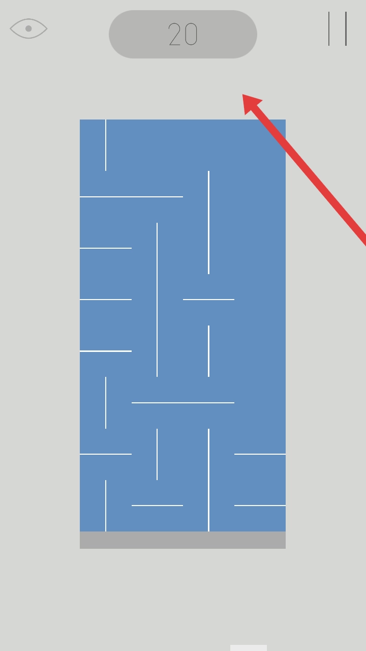 持续点击蓝色区域内的白色长线,通过缩短操作完成挑战,上方分数(如“20”)随进度提升,达成关卡目标。
