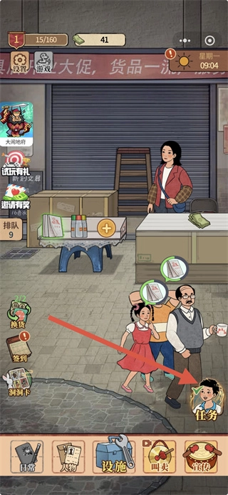 1、在小卖部界面,点击右下角任务按钮,打开任务详情页面。