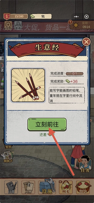 2、在任务页面选生意经任务,点击立刻前往按钮,推进任务流程。