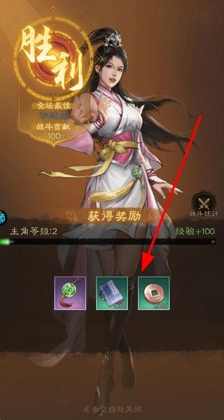 3、战斗胜利后会显示全场最佳角色,同时获得等级提升与各类奖励,点击即可领取奖励。
