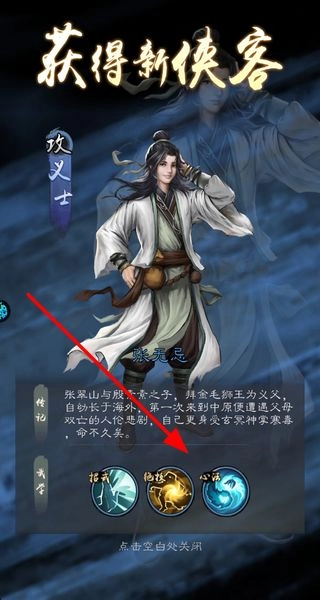 4、玩家在获得新侠客后可查看其传记,同时解锁招式等功能,将新侠客纳入阵容使用。
