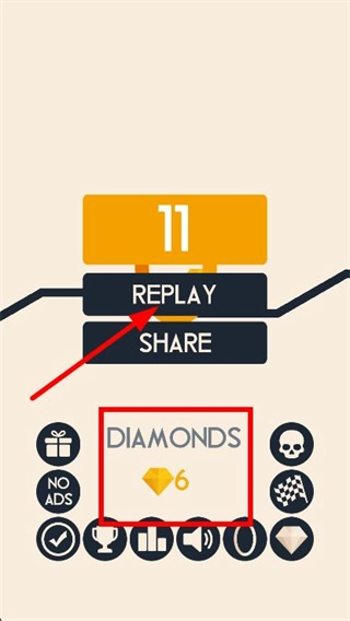 3、要是圆圈未能成功避开障碍,就点击REPLAY按钮,重新开启挑战。