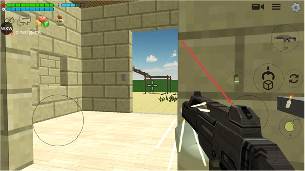 3、在游戏过程中,玩家可借助左侧的虚拟按键来操控角色进行移动,右侧的按键则具备射击、切换武器等功能,同时还能使用手雷类的道具,而界面顶部会实时呈现角色的血量等相关状态信息。