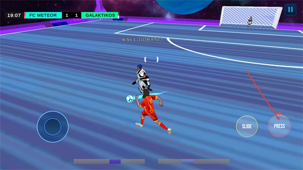 3、在进攻时若遇到对手防守,可点击PRESS按钮进行施压,以此尝试突破对方防线,推进球的位置,从而为后续的传球或射门创造有利条件。