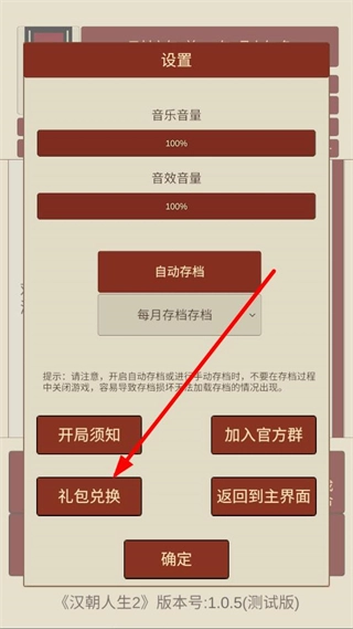 3、打开设置面板后,找到并点击礼包兑换选项,即可进入礼包码兑换的操作页面。