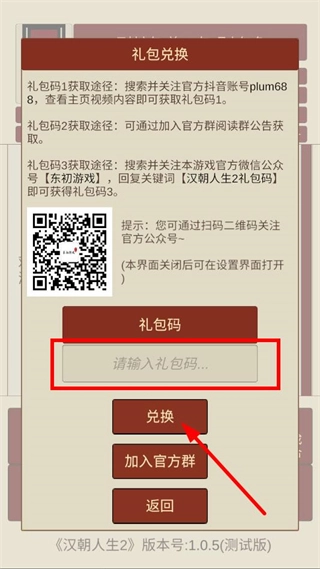 4、进入礼包兑换页面后,在输入框内填写对应的礼包码,接着点击兑换按钮,就能完成礼包码的兑换流程。