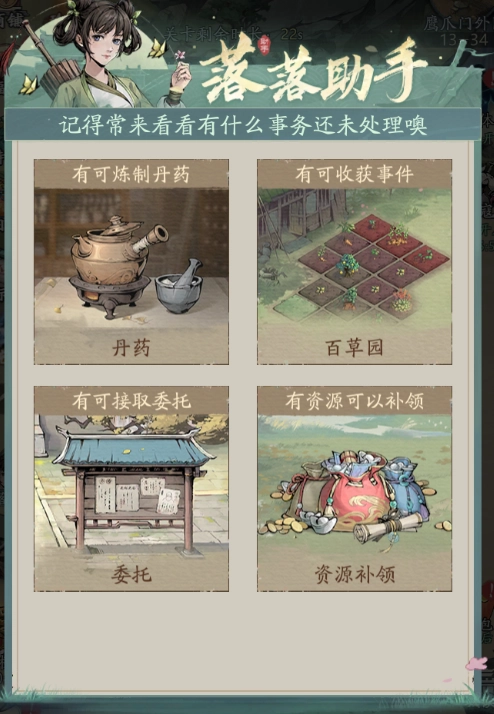 5、落落助手:能便捷地接取任务、参与副本,各类资源信息也可通过该助手进行查询。